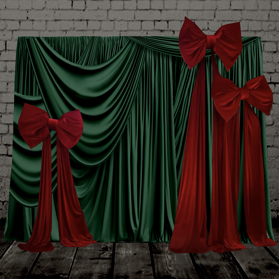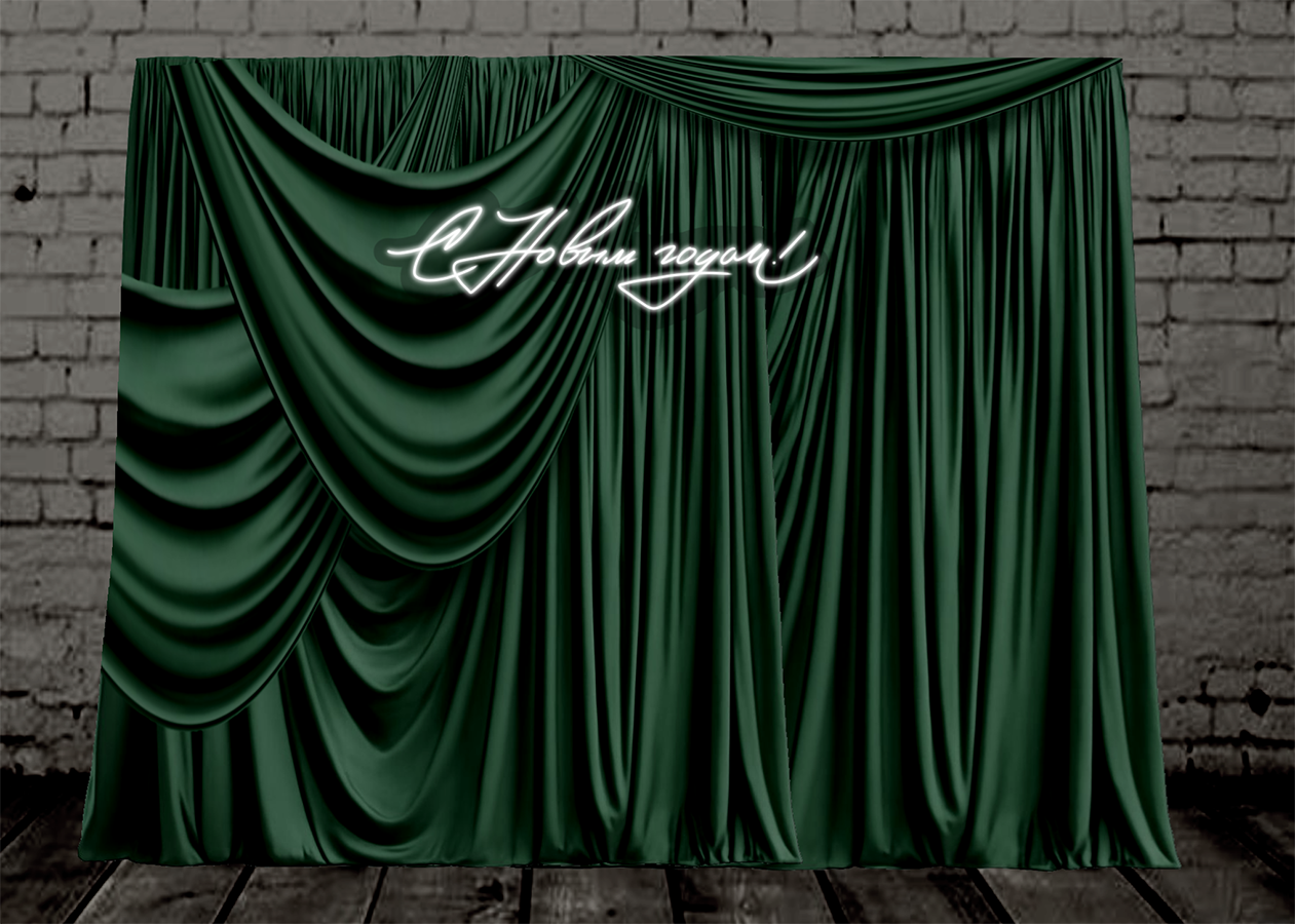 Роскошь и стиль нового года! Наша фотозона — это воплощение элегантности: глубокий изумрудный бархат, три объёмных банта и сияющая неоновая вывеска.