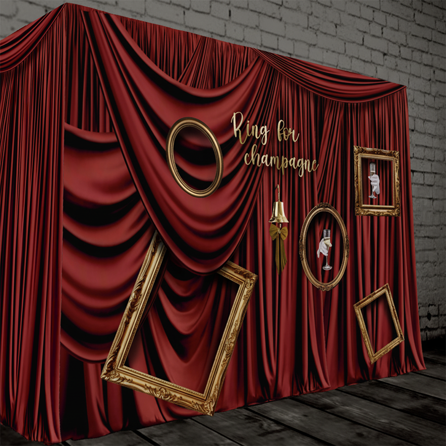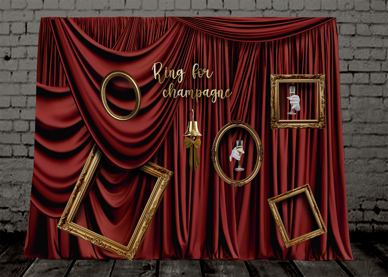 Позвольте предложить вам шампанское с помощью магии! Наша фотозона воплощает атмосферу старинного, но очень гостеприимного особняка. Элегантная драпировка, резные рамы и позолоченная рында создают идеальный антураж.