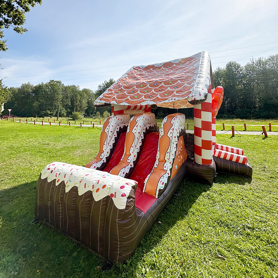 Батут "Пряничный домик" — это ожившая конфетная сказка, где каждый прыжок пахнет имбирными пряниками и детской радостью.