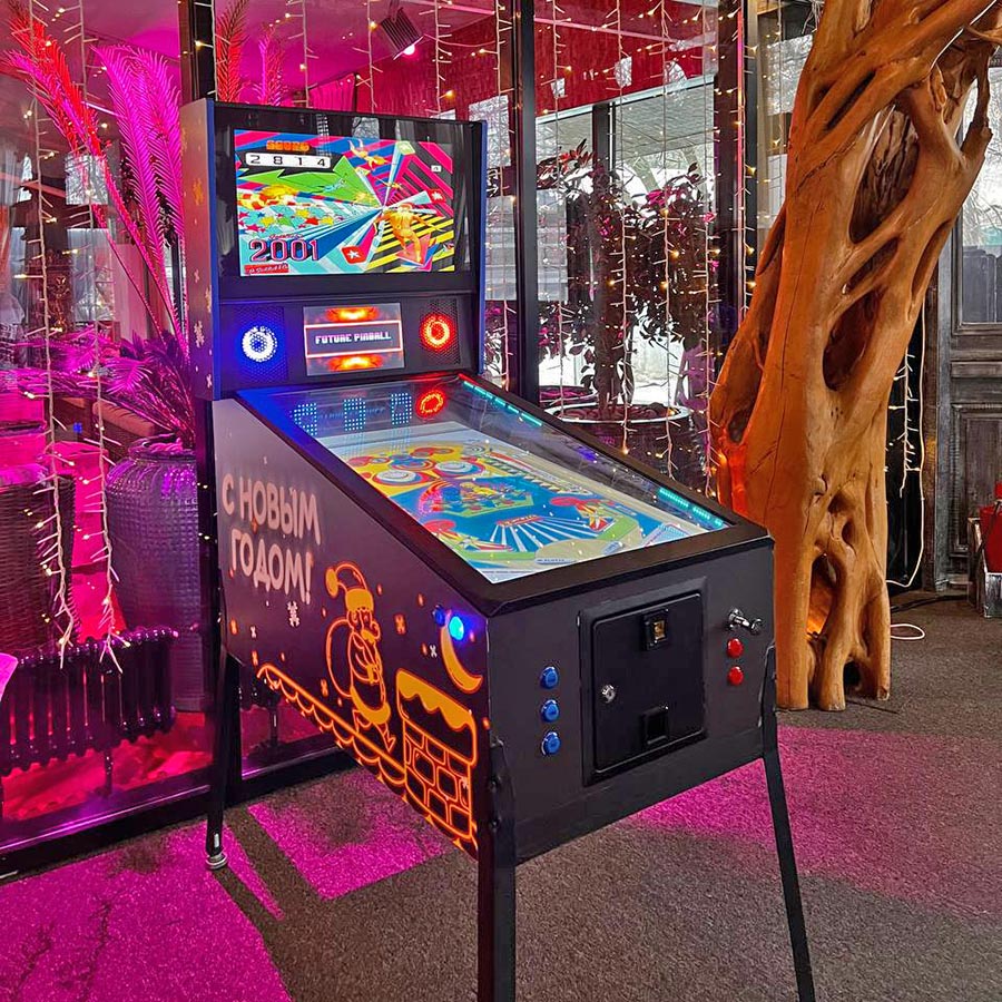 Создайте незабываемую атмосферу праздника с помощью легендарного аркадного автомата пинбол в новогоднем дизайне!